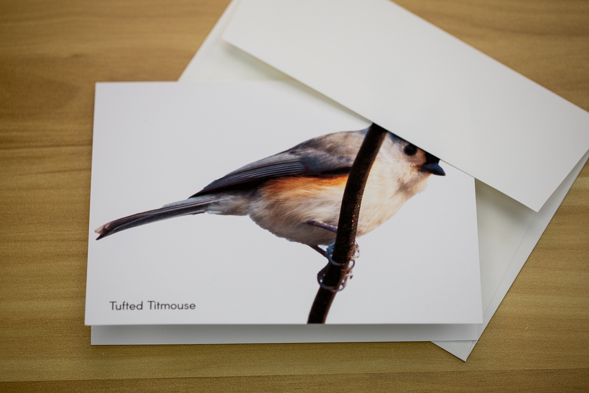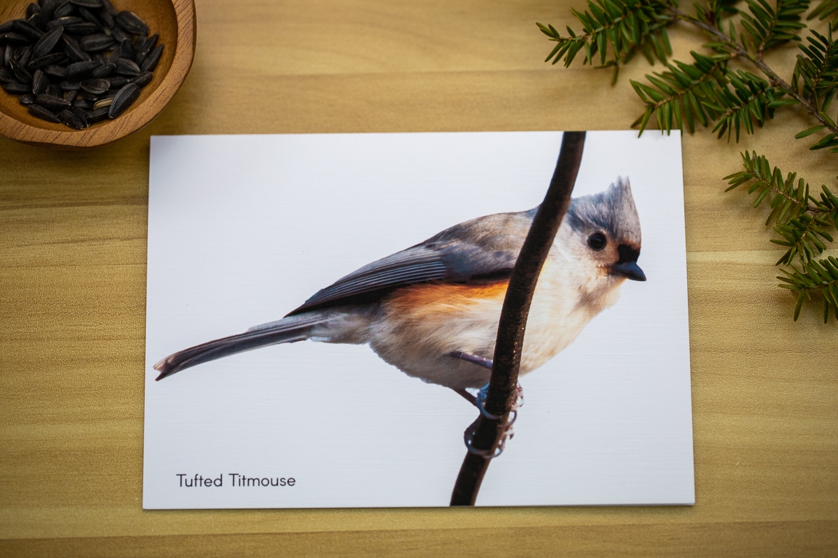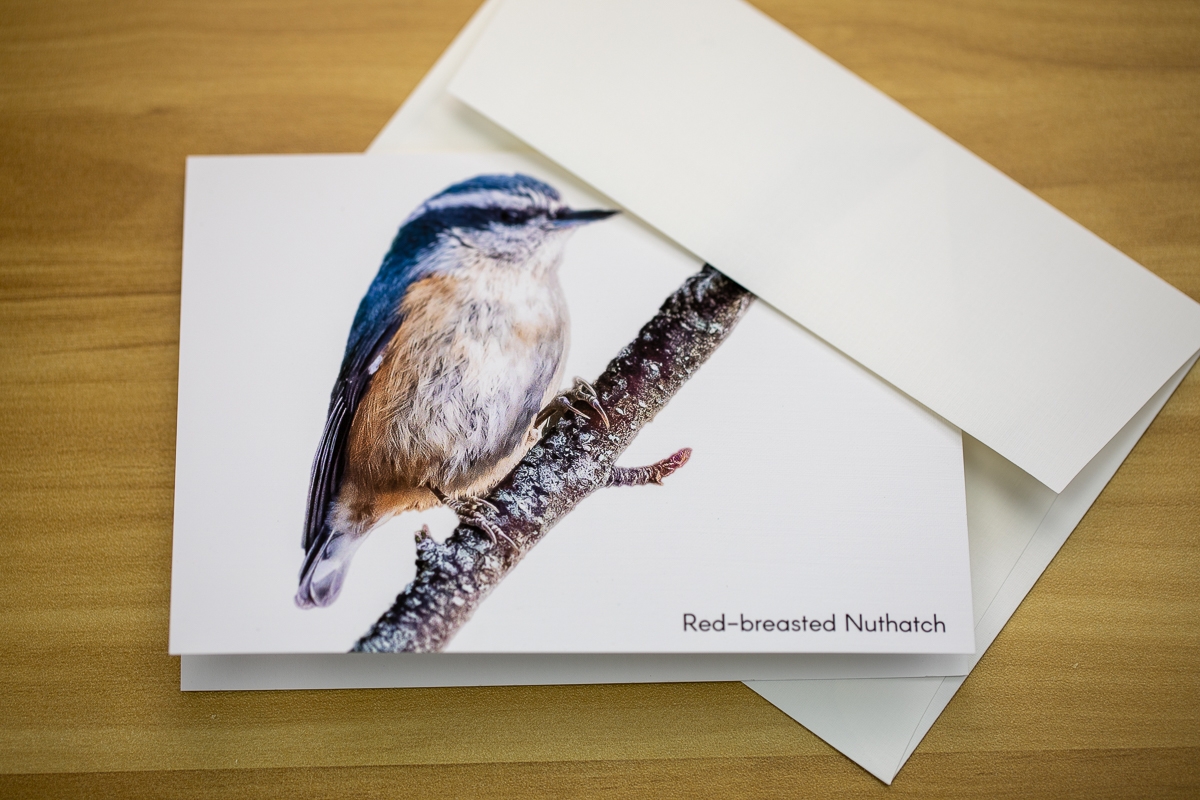 This set of 7 bird greeting cards feature bird photography captured in the woods of Freeport, Maine. The birds featured are: Black-capped Chickadee, Northern Cardinal, Blue Jay, Tufted Titmouse, Downy Woodpecker and Red-breasted Nuthatch. The outside of the card is an elegant linen finish with a matte finish on the inside, perfect for writing a note. A special card to send to the bird-lover in your life for any occasion!