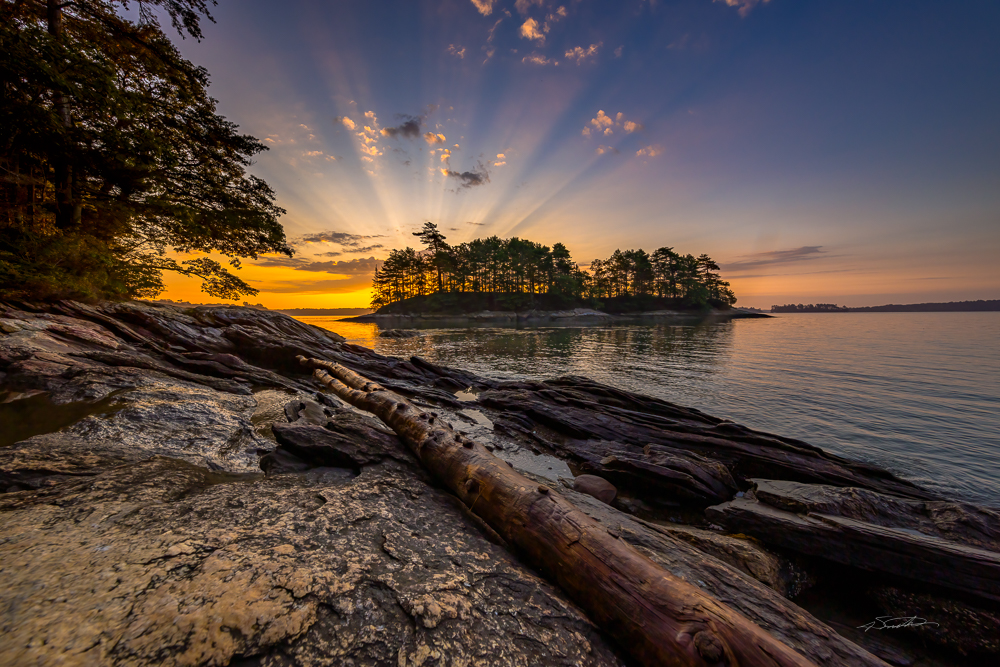 Notes: Sunrise at Wolfe’s Neck Woods State Park looking at Googins Island.